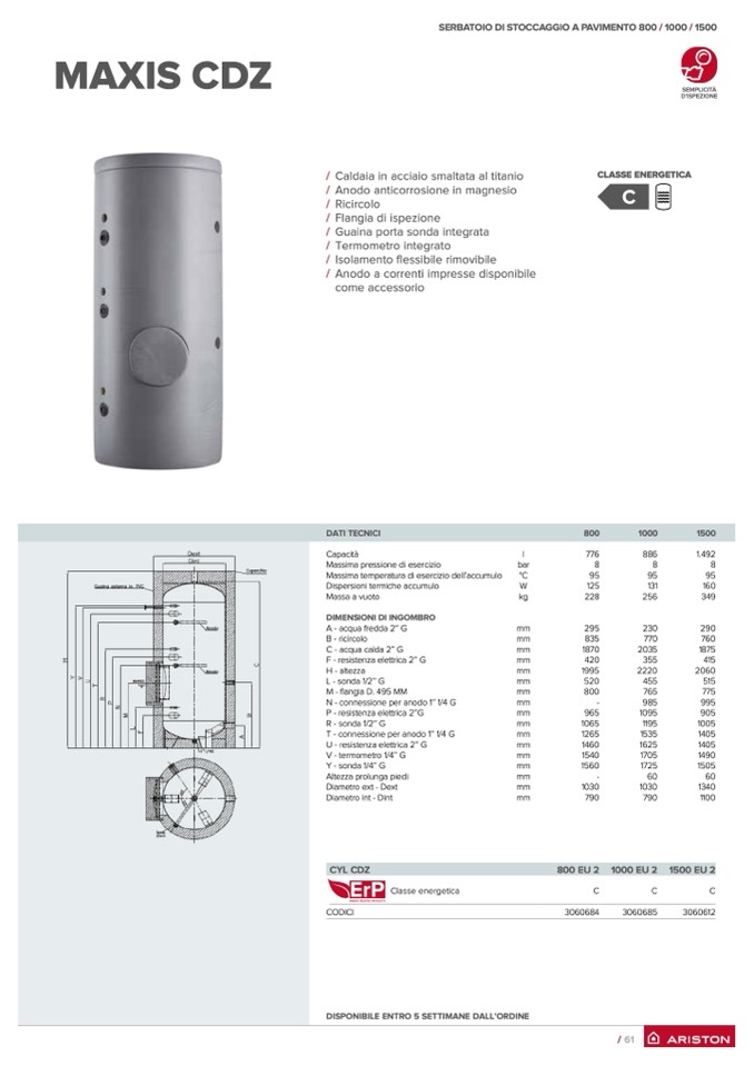 SERBATOIO DI STOCCAGGIO A PAVIMENTO 800 / 1000 / 1500