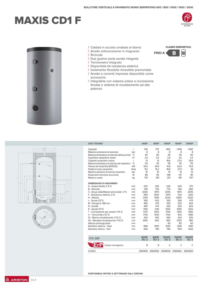 BOLLITORE VERTICALE A PAVIMENTO MONO SERPENTINO 600 / 800 / 1000 / 1500 / 2000