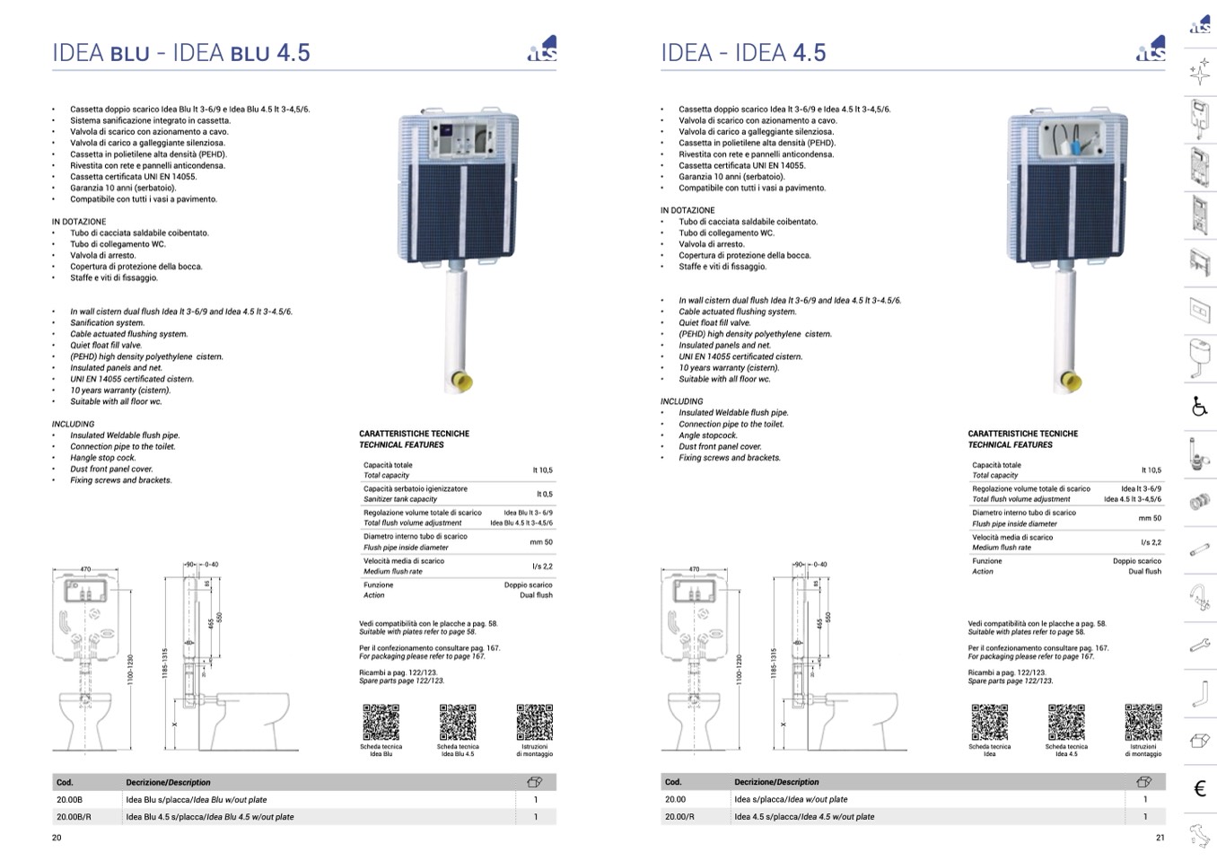 In wall cistern dual flush Idea lt 3-6/9 and Idea 4.5 lt 3-4.5/6.