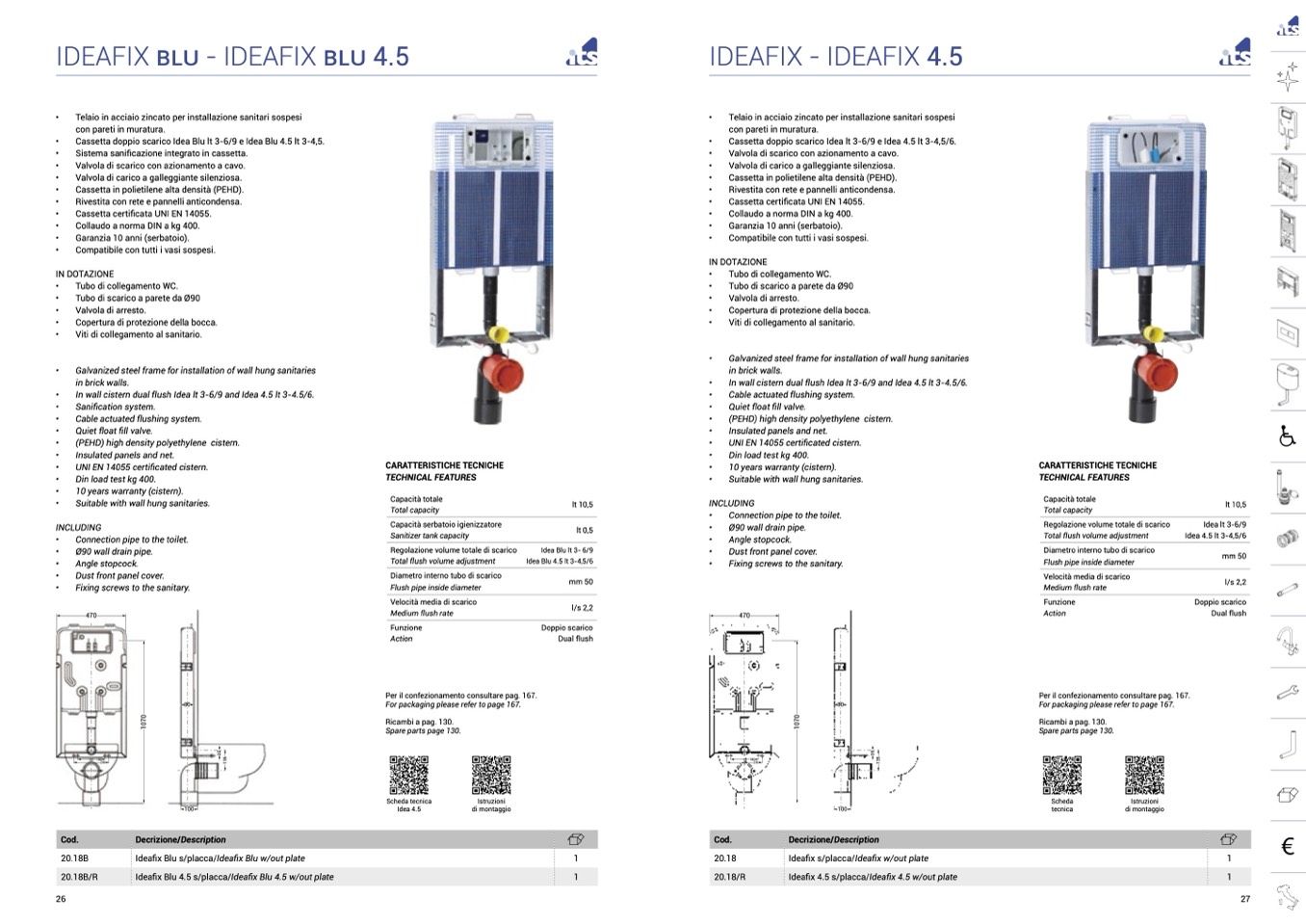 In wall cistern dual flush Idea lt 3-6/9 and Idea 4.5 lt 3-4.5/6.