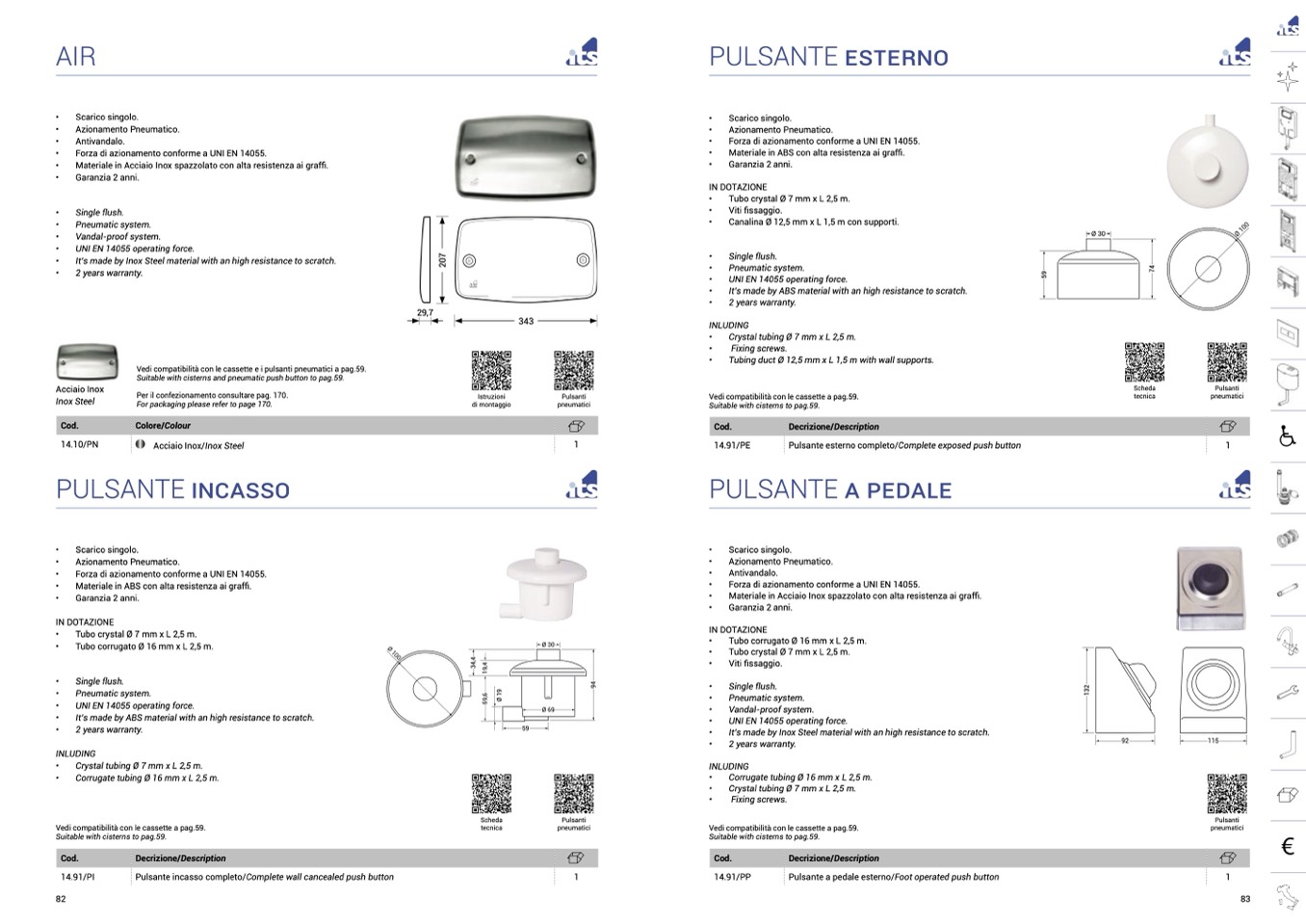 Suitable with cisterns and pneumatic push button to pag.59.
