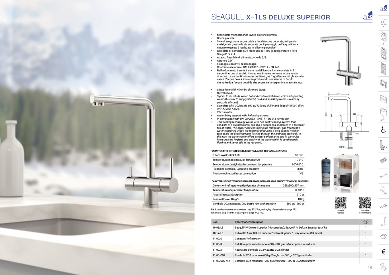CARATTERISTICHE TECNICHE REFRIGERATORE/REFRIGERATOR FAUCET TECHNICAL FEATURES