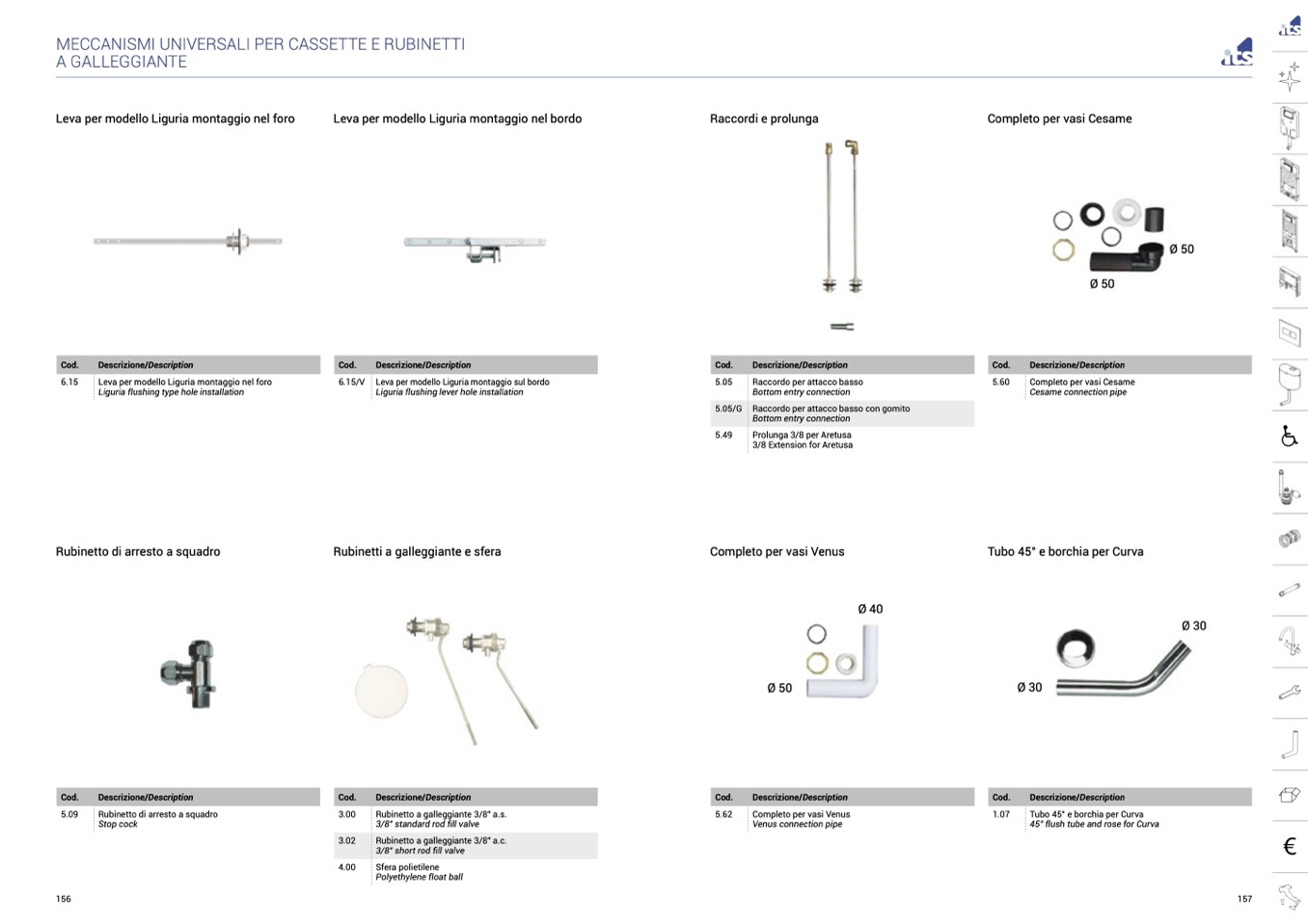 6.15/V Leva per modello Liguria montaggio sul bordo
