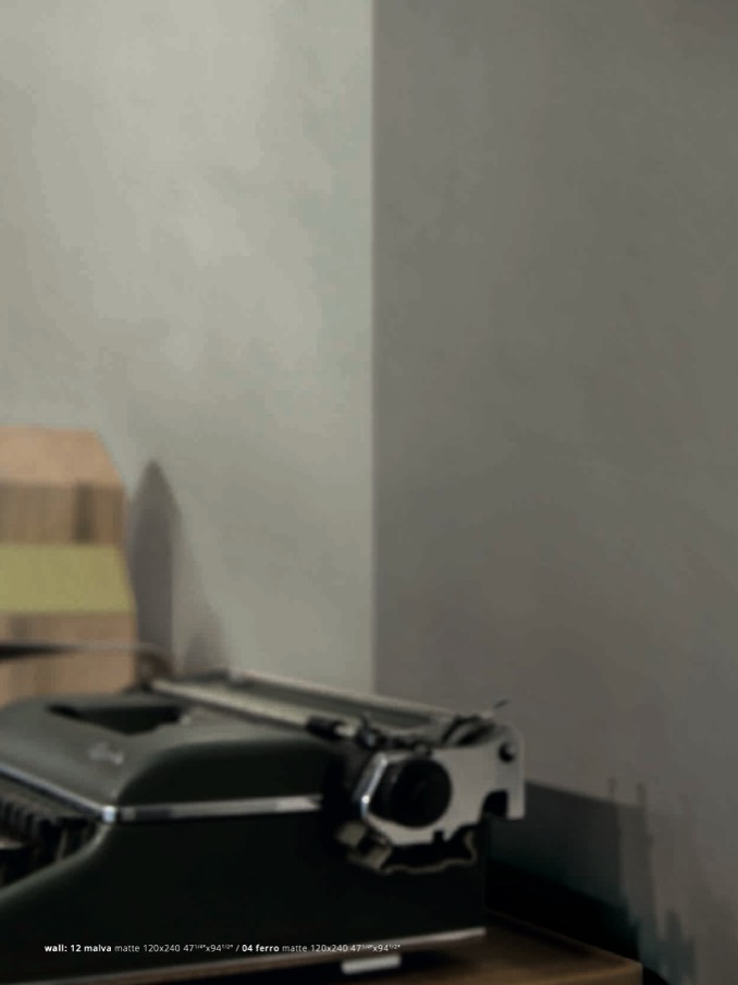 wall: 12 malva matte 120x240 471/4”x941/2” / 04 ferro matte 120x240 471/4”x941/2”