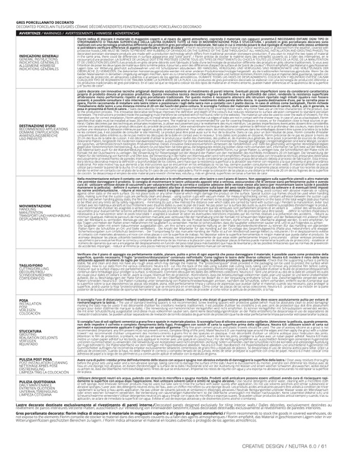 n prossimità di fonti di calore. / Slabs decorated by innovative hand techniques intended only for covering indoor walls. Any minor
