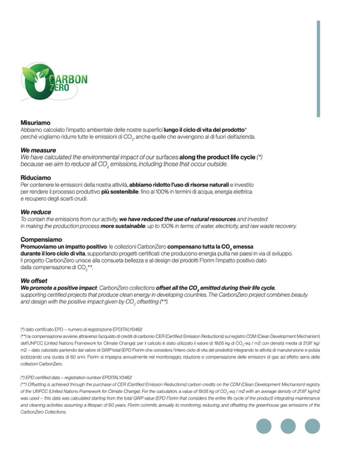 Il progetto CarbonZero unisce alla consueta bellezza e al design dei prodotti Florim l’impatto positivo dat