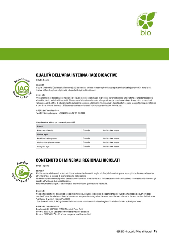 Si attribuisce il punto di Rating al materiale formulato con un contenuto di minerali regionali riciclati minimo del 30% del peso totale.
