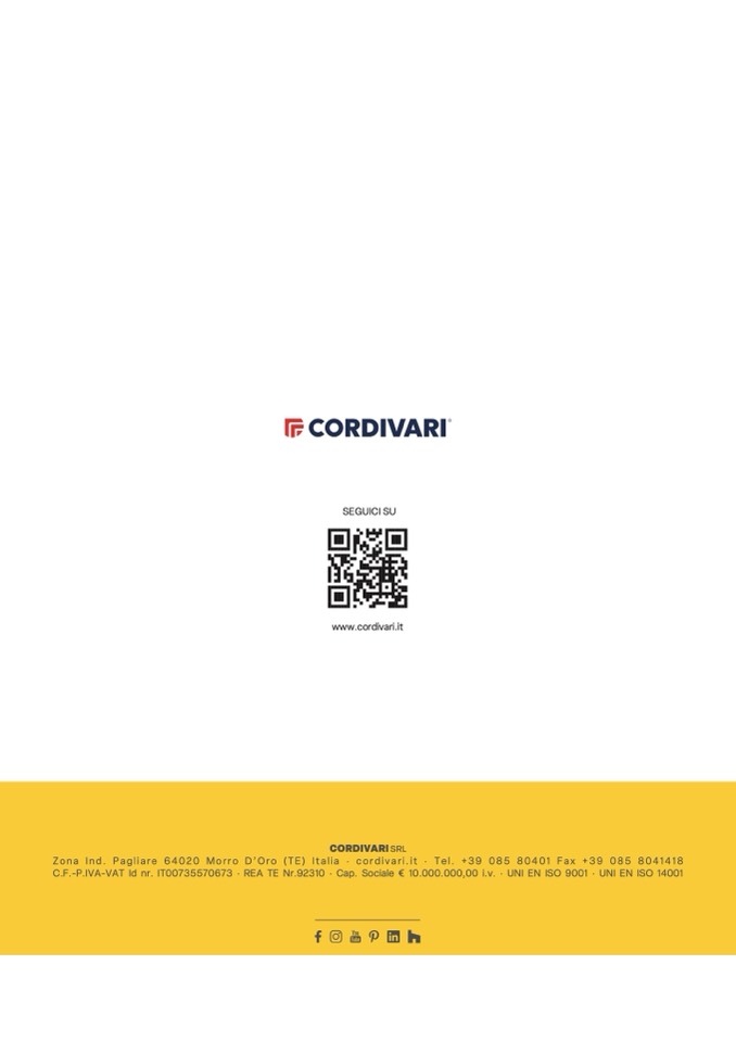 Zona Ind. Pagliare 64020 Morro D’Oro (TE) Italia · cordivari.it · Tel. +39 085 80401 Fax +39 085 8041418