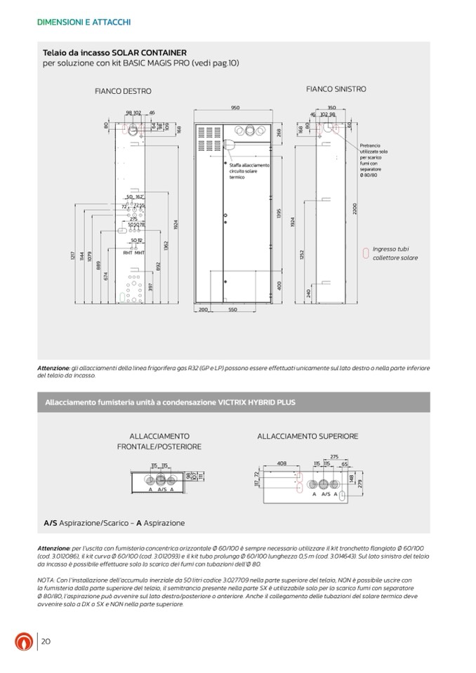 Ø 80/80, l’aspirazione può avvenire sul lato destro/posteriore o anteriore. Anche il collegamento delle tubazioni del solare termico deve