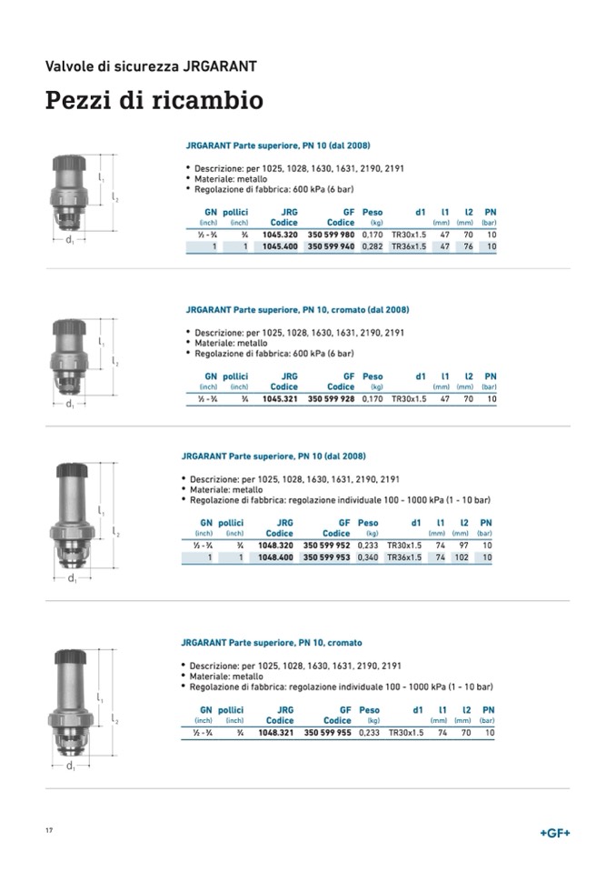 Regolazione di fabbrica: regolazione individuale 100 - 1000 kPa (1 - 10 bar)