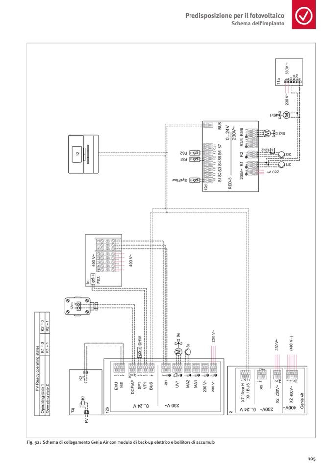 Fig. 92: Schema di collegamento Genia Air con modulo di back-up elettrico e bollitore di accumulo