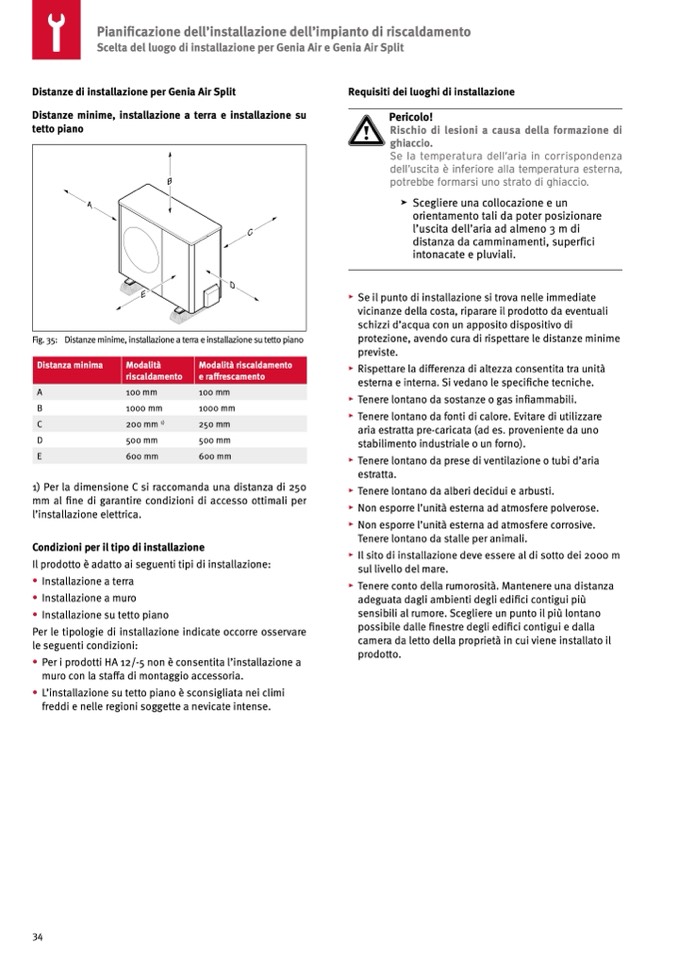 Distanze di installazione per Genia Air Split