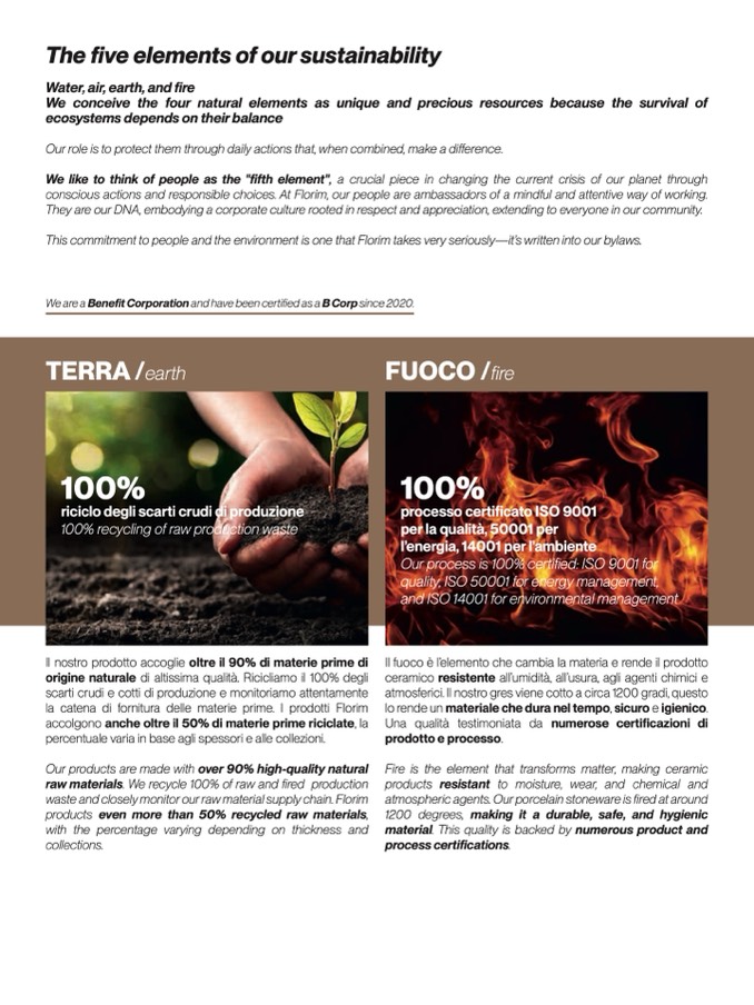 This commitment to people and the environment is one that Florim takes very seriously—it’s written into our bylaws