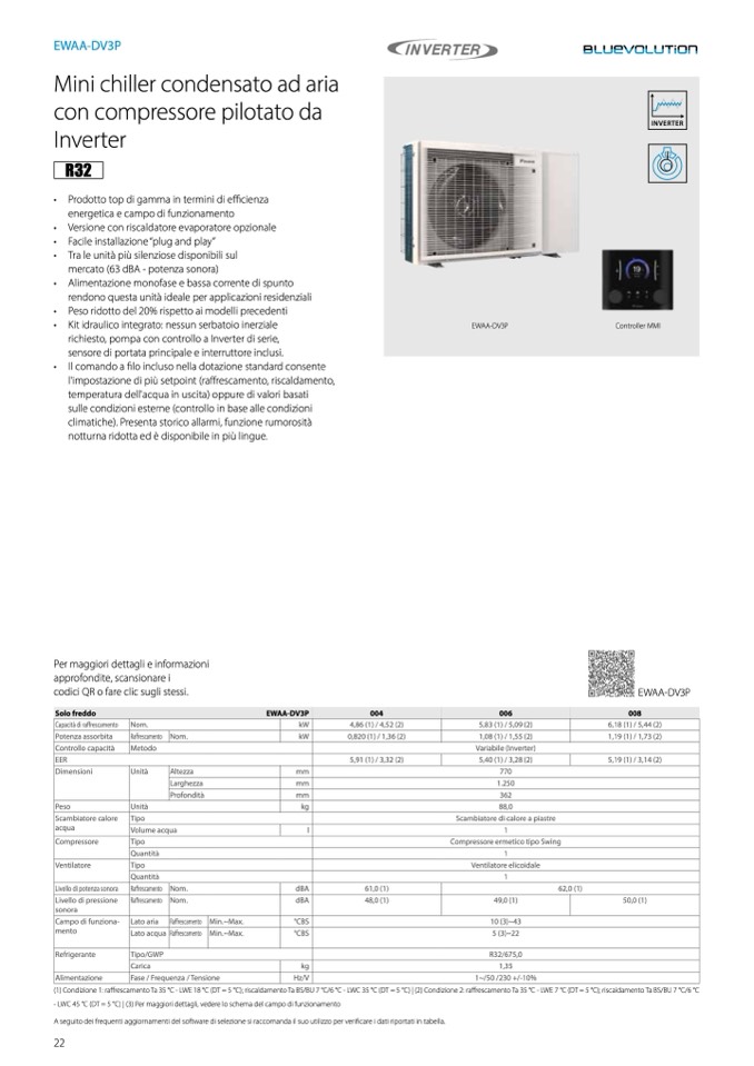 ffrescamento Ta 35 °C - LWE 18 °C (DT = 5 °C); riscaldamento Ta BS/BU 7 °C/6 °C - LWC 35 °C (DT = 5 °C) | (2) Condizione 2: raffrescamento Ta 35 °C - LWE 7 °C (DT = 5 °C); riscaldamento Ta BS/BU 7 °C/6 °C
