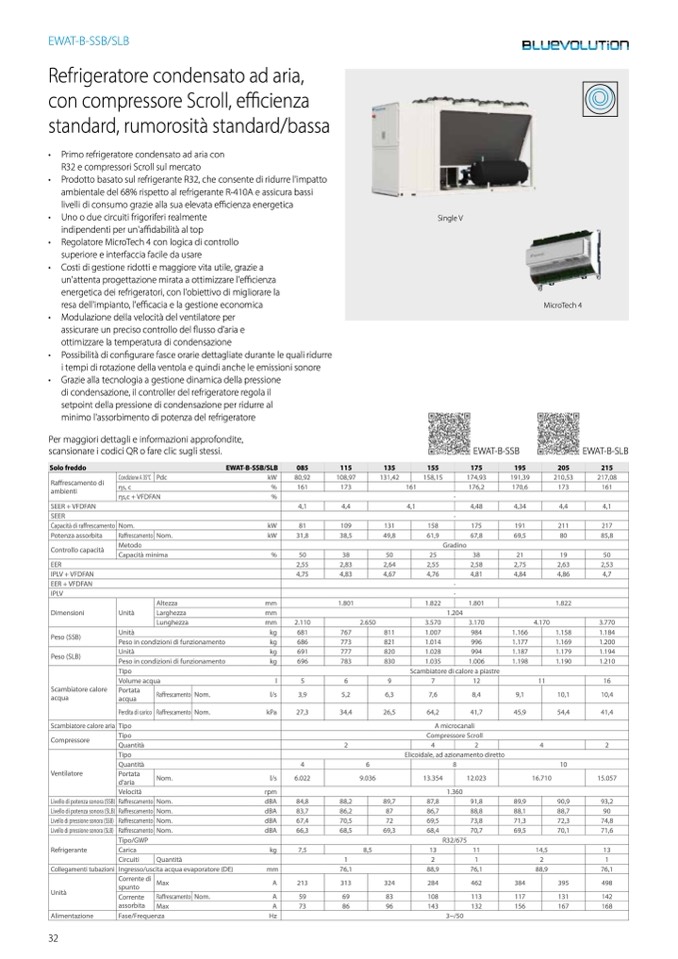• Prodotto basato sul refrigerante R32, che consente di ridurre l'impatto