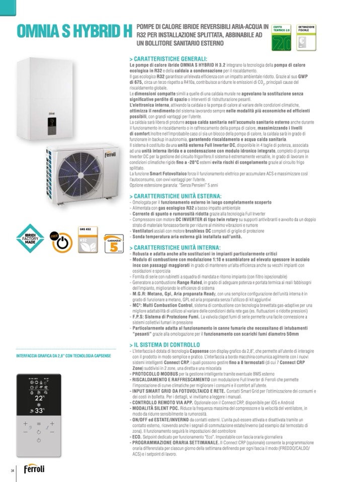 - RISCALDAMENTO E RAFFRESCAMENTO con modulazione Full Inverter di Ferroli che permette
