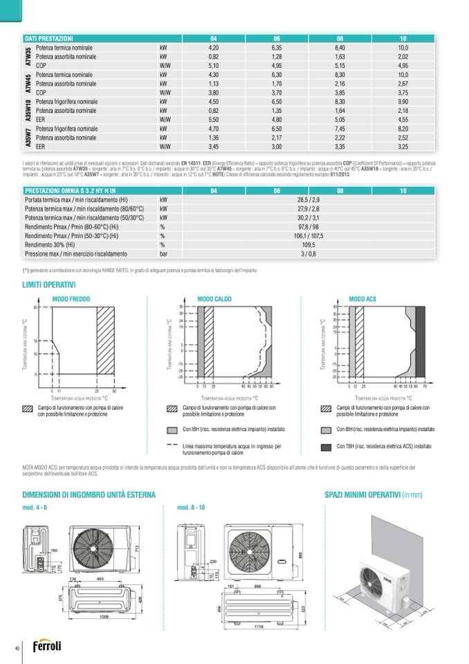 impianto : acqua in 23°C out 18°C A35W7 = sorgente : aria in 35°C b.s. / impianto : acqua in 12°C out 7°C NOTE: Classe di ef
