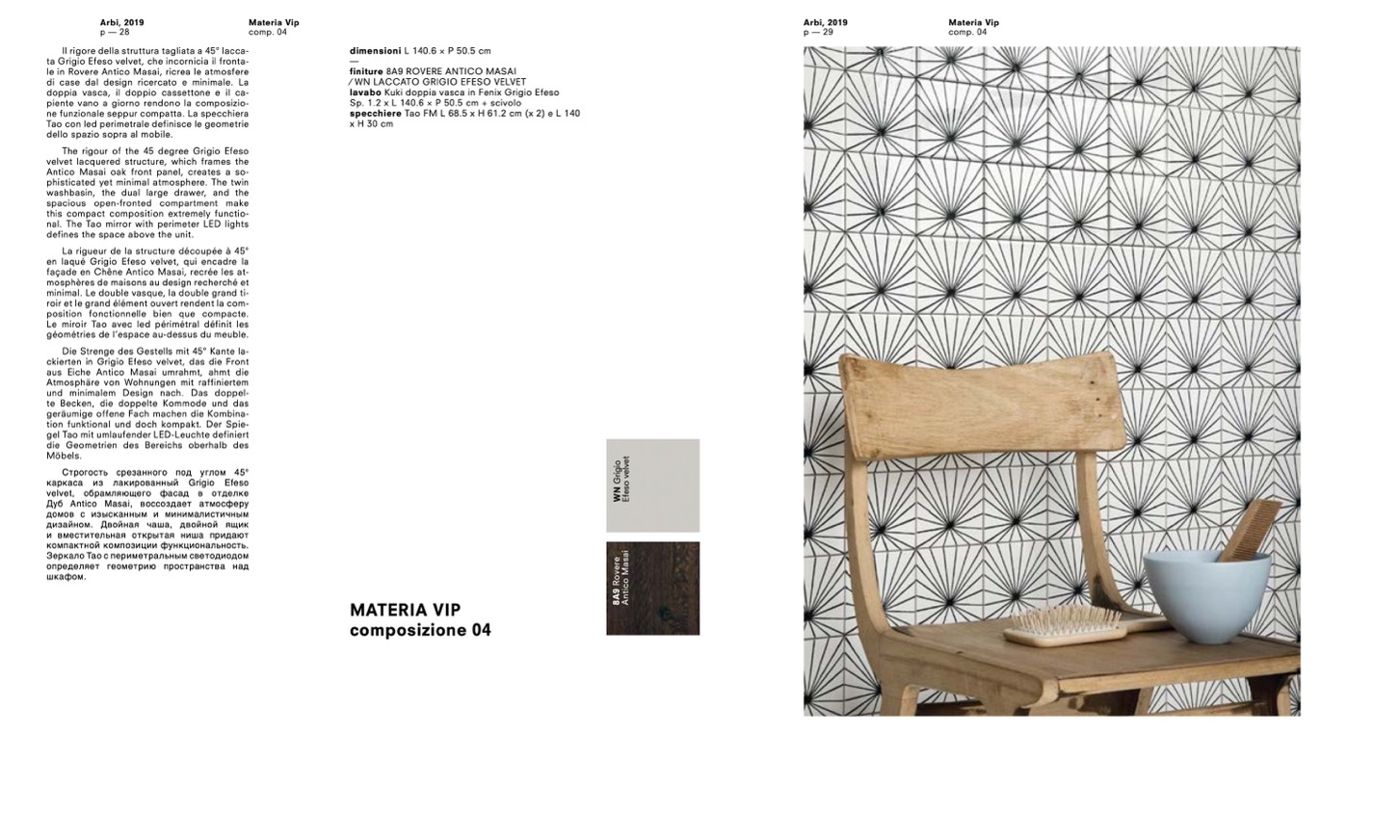 ta Grigio Efeso velvet, che incornicia il fronta-