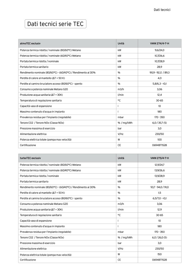 Rendimento nominale (80/60°C) - (60/40°C) / Rendimento al 30%