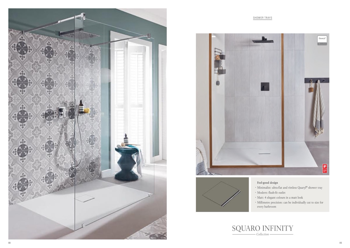 · Minimalist: ultra-flat and rimless Quaryl® shower tray