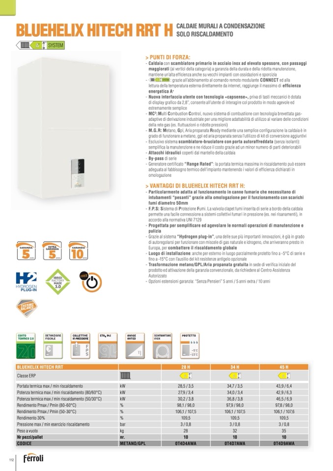 - Generatore certificato “Range Rated”: la portata termica massima in riscaldamento può essere