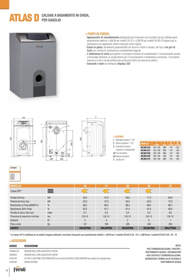 ficata se le caldaie vengano abbinate a bruciatori di gasolio con assorbimento elettrici ≤180 W per i modello ATLAS D 25 - 37 e ≤200 W per i modelli ATLAS D 50 - 63 - 75