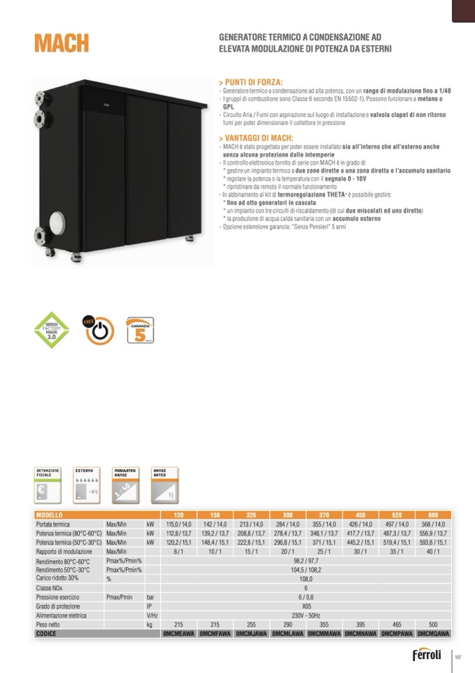 - Generatore termico a condensazione ad alta potenza, con un range di modulazione fino a 1/40