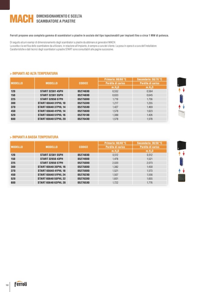 Caratteristiche e dati tecnici degli scambiatori a piastre START sono consultabili alle pagine successive