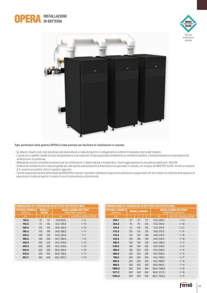 COMBINAZIONI DI 2 GENERATORI IN BATTERIA CERTIFICATA INAIL