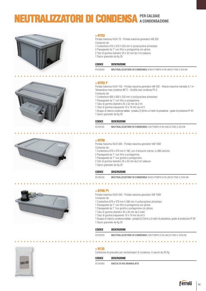 NEUTRALIZZATORE DI CONDENSA CON POMPA DI RILANCIO FINO A 1500 kW