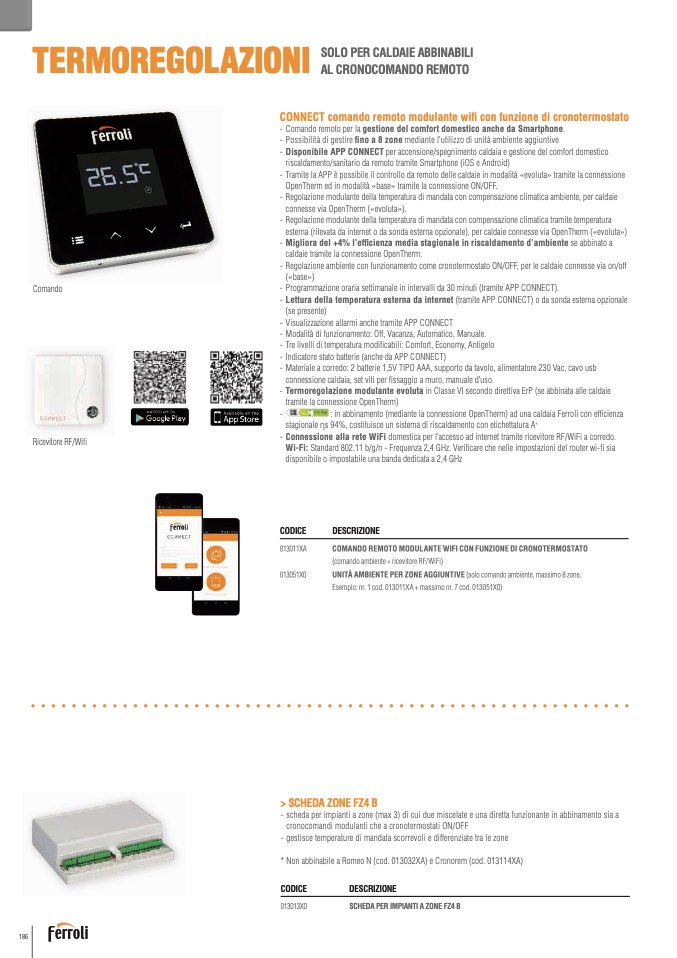 : in abbinamento (mediante la connessione OpenTherm) ad una caldaia Ferroli con ef