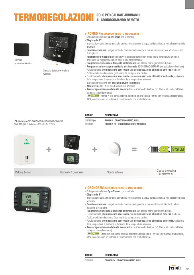 (*) ROMEO N non è abbinabile alle caldaie a gasoli