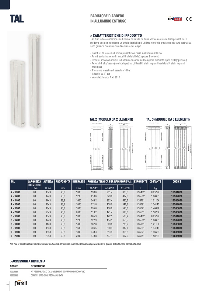 TAL è un radiatore d’arredo in alluminio, costituito da barre verticali estruse e teste pressofuse. Il