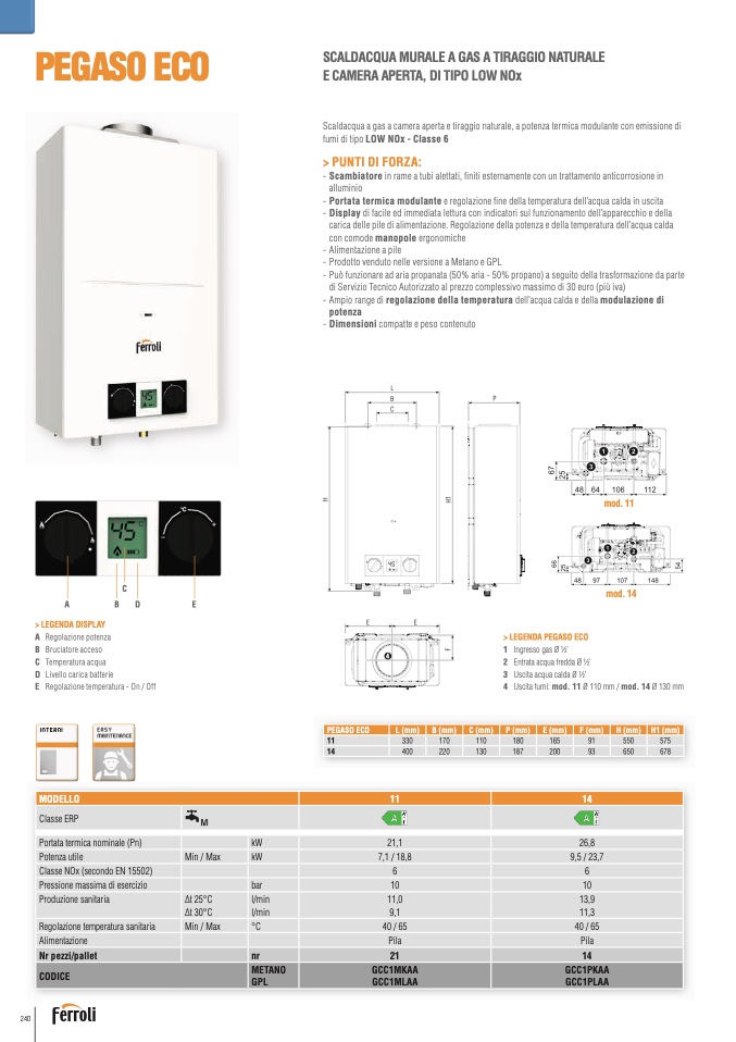Scaldacqua a gas a camera aperta e tiraggio naturale, a potenza termica modulante con emissione d