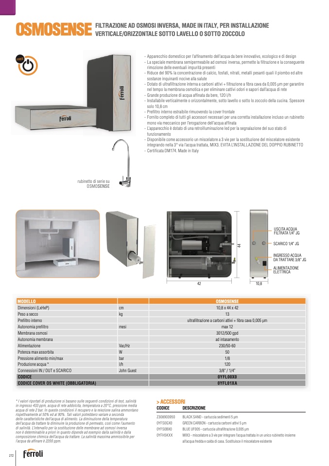 Fornito completo di tutti gli accessori necessari per una corretta installazione incluso un rubinetto