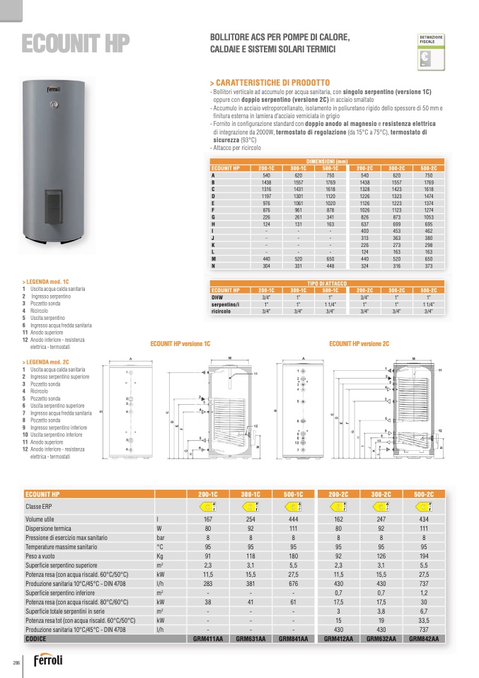 - Bollitori verticale ad accumulo per acqua sanitaria, con singolo serpentino (versione 1C)