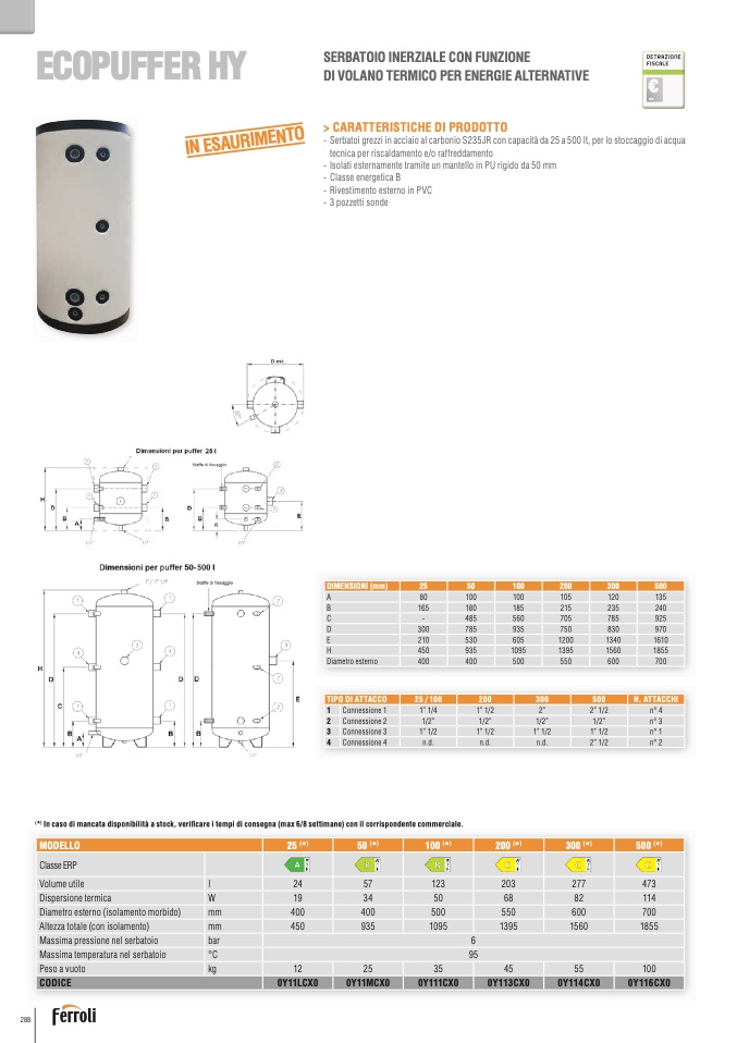 (*) In caso di mancata disponibilità a stock, verificare i tempi di consegna (max 6/8 settimane) con il corrispondente commerciale