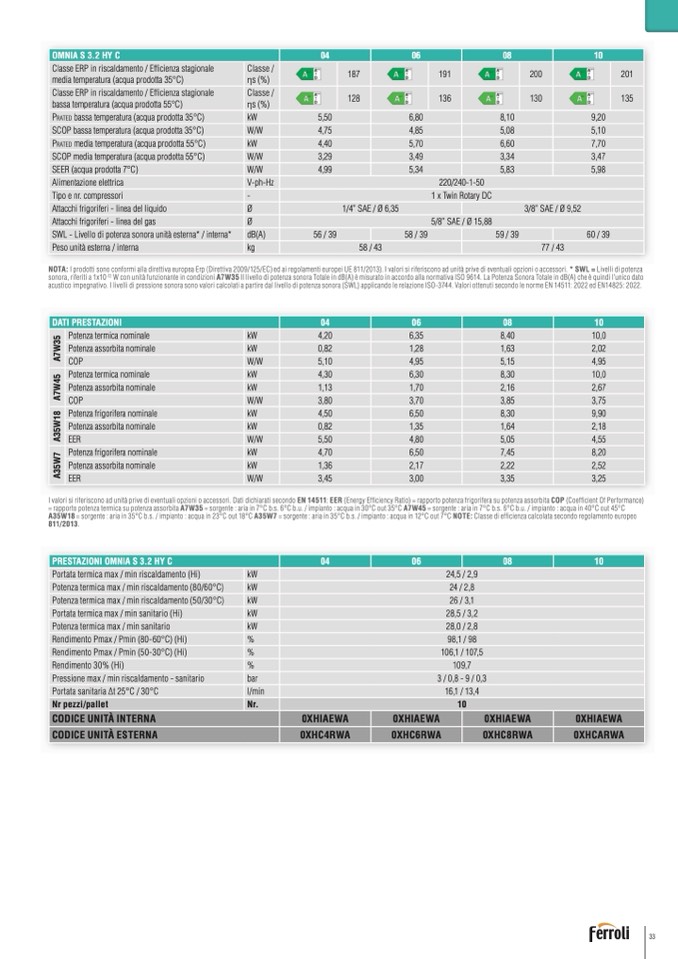 NOTA: I prodotti sono conformi alla direttiva europea Erp (Direttiva 2009/125/EC) ed ai regolamenti europei UE 811/2013). I valori si riferiscono ad unità prive di eventuali opzioni o accessori. * SWL = Livelli di potenza