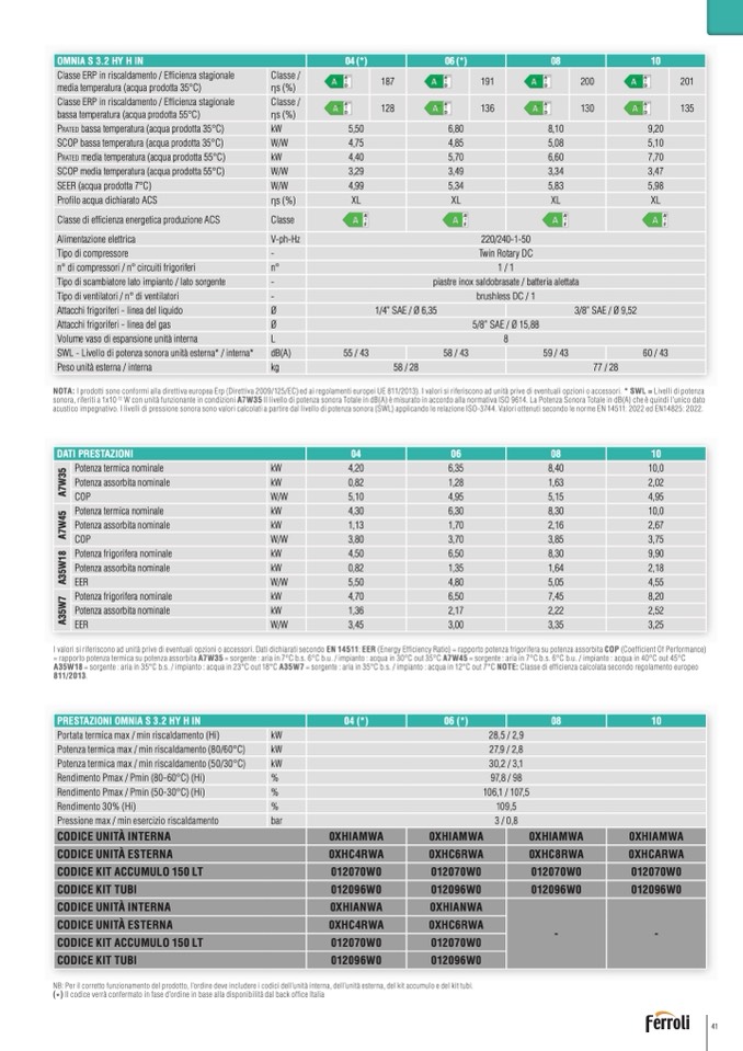 NOTA: I prodotti sono conformi alla direttiva europea Erp (Direttiva 2009/125/EC) ed ai regolamenti europei UE 811/2013). I valori si riferiscono ad unità prive di eventuali opzioni o accessori. * SWL = Livelli di potenza