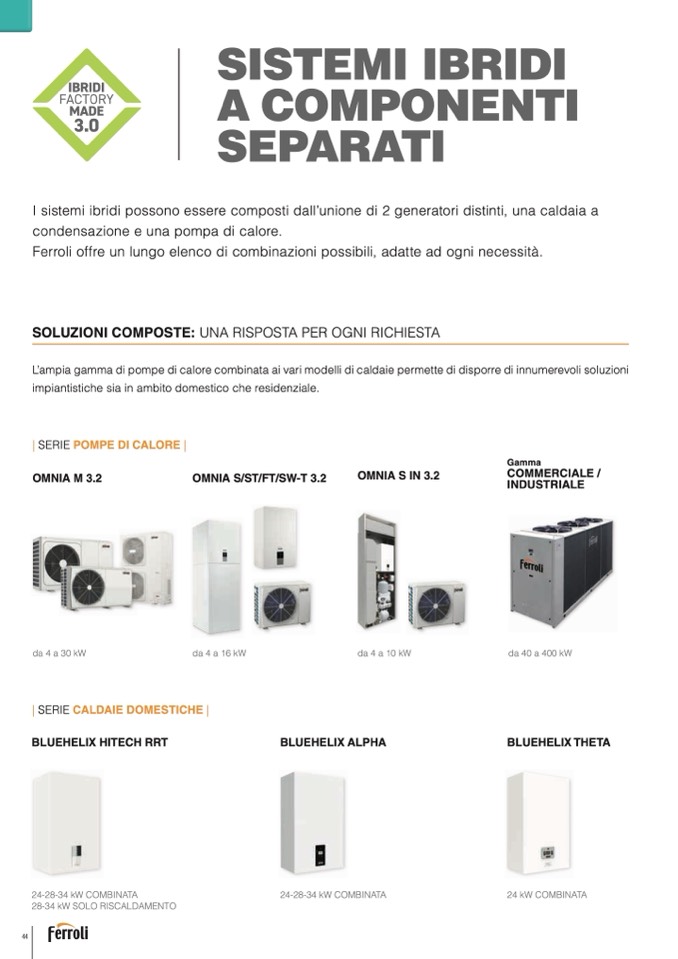 Ferroli offre un lungo elenco di combinazioni possibili, adatte ad ogni necessità