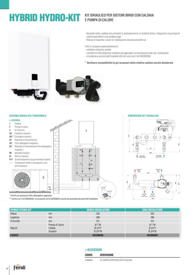 Kit posto sotto-caldaia che consente la realizzazione di un sistema ibrido, integrando una pompa di