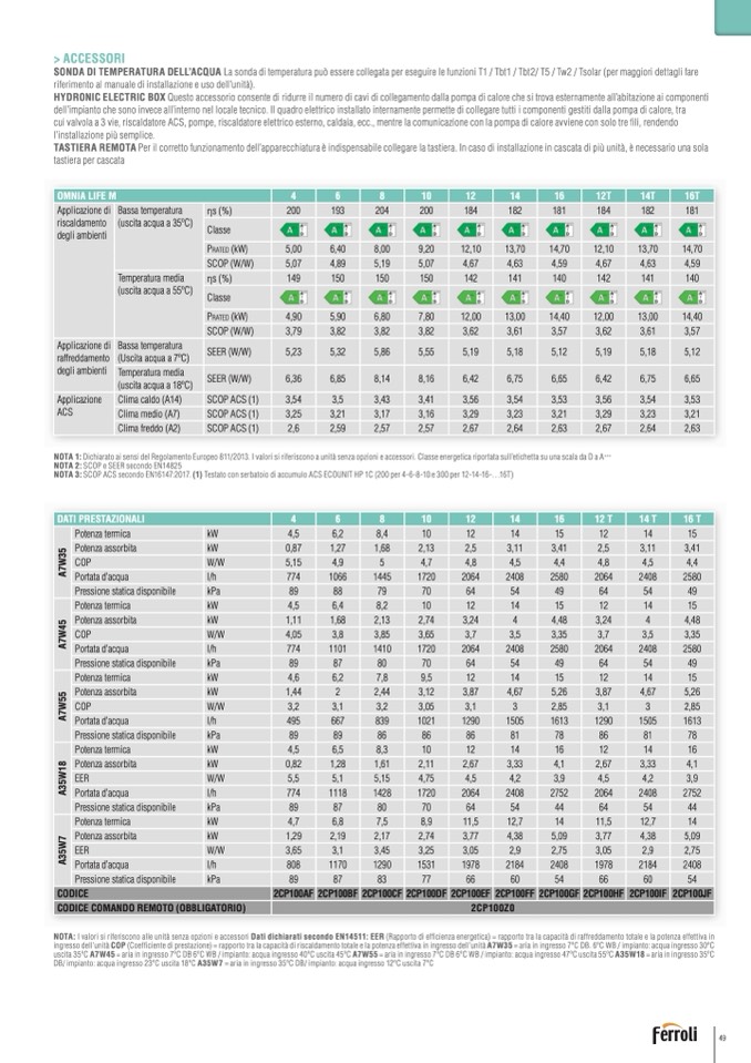 NOTA 3: SCOP ACS secondo EN16147:2017. (1) Testato con serbatoio di accumulo ACS ECOUNIT HP 1C (200 per 4-6-8-10 e 300 per 12-14-16-…16T