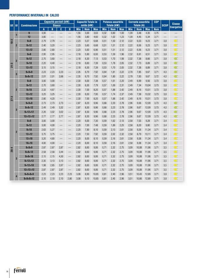 Capacità parziali (kW)