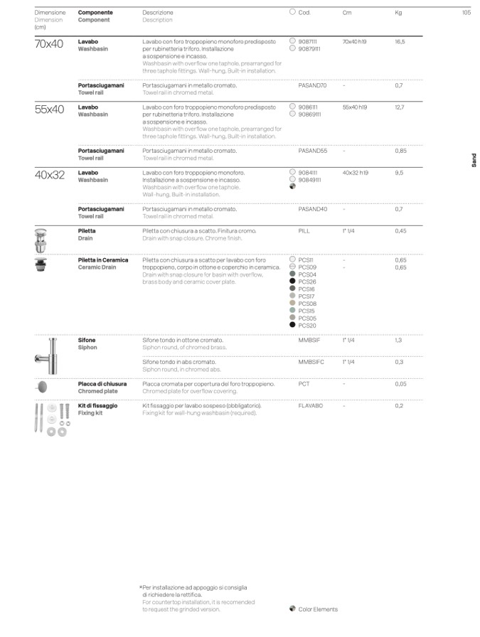 Kit fissaggio per lavabo sospeso (obbligatorio).