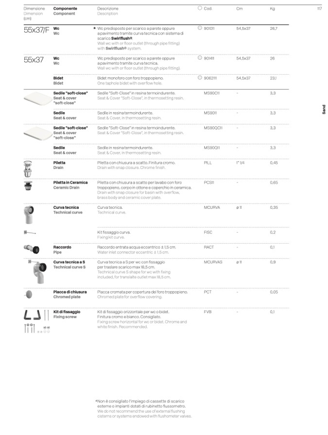 *Non è consigliato l’impiego di cassette di scarico