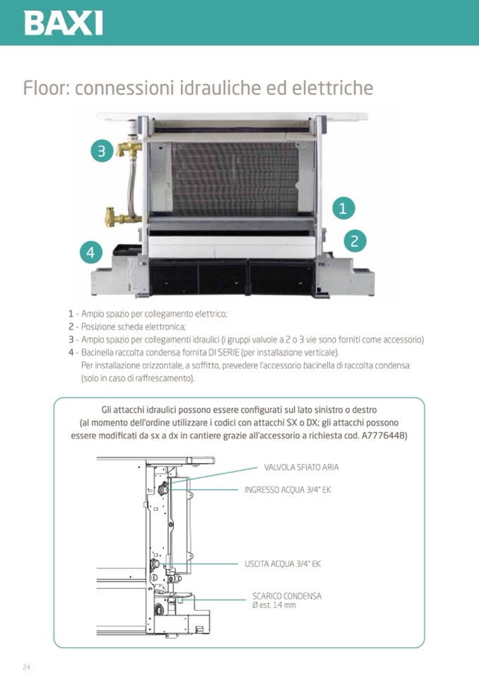 Per installazione orizzontale, a soffitto, prevedere l’accessorio bacinella di raccolta condensa