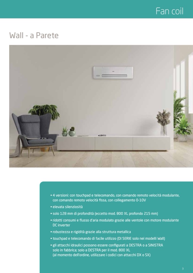 • touchpad e telecomando di facile utilizzo (DI SERIE solo nei modelli Wall)