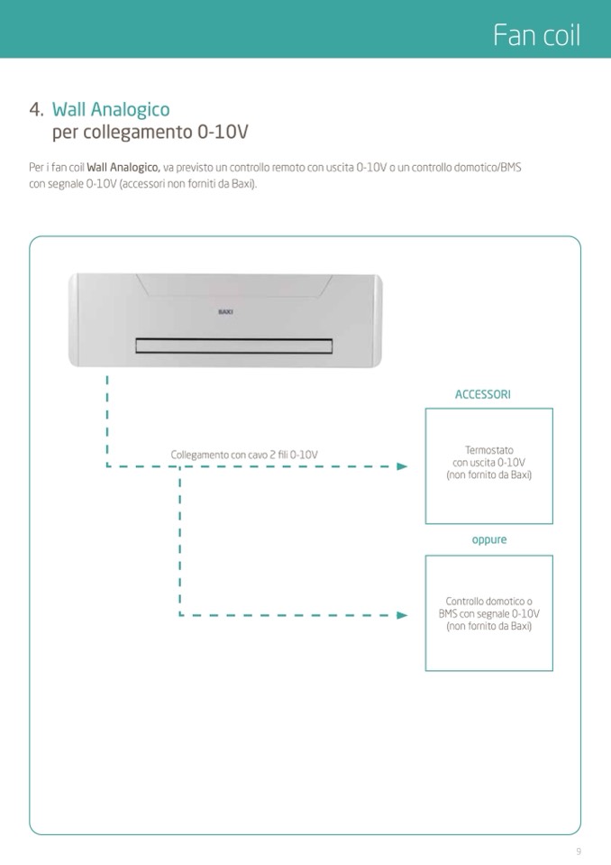 Per i fan coil Wall Analogico, va previsto un controllo remoto con uscita 0-10V o un controllo domotico/BMS