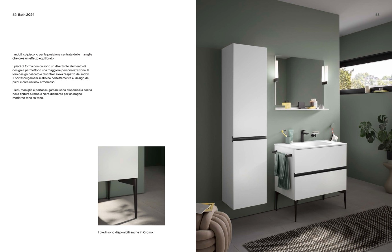 Piedi, maniglie e portasciugamani sono disponibili a scelta