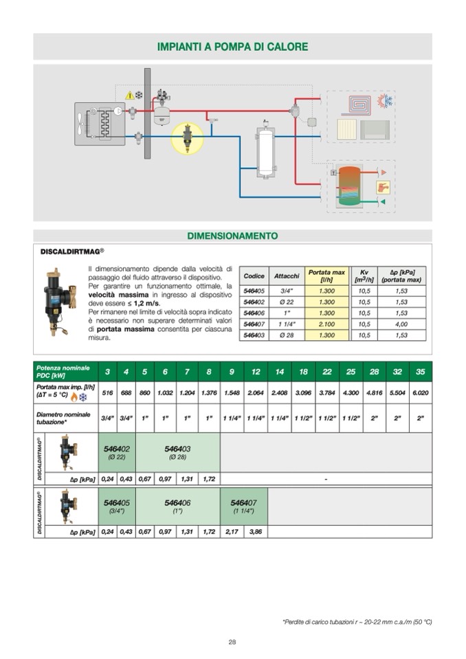 *Perdite di carico tubazioni r ~ 20-22 mm c.a./m (50 °C)